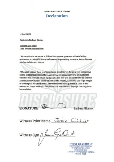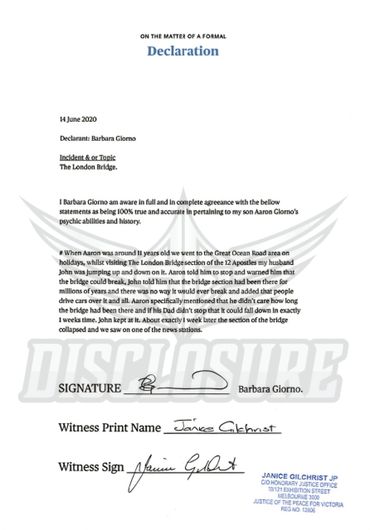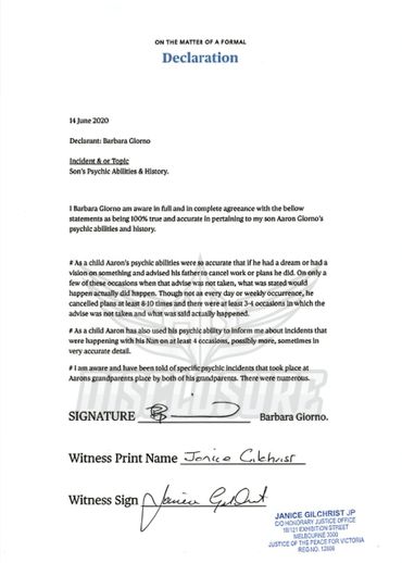 Though there are 10 Stat Decs listed here, I have had many hundreds, or even thousands of events happen over the years, this collection is a small body of evidence collected from a small selection of witnesses who were happy to come forward to validate these events. Though not the only witnesses to many events, nor the only ones who are accessible to come forward in relation to other events, these are at this time the only statutory declaration witness that I have asked to provide to a JP an account surrounding particular events. This will be concurrent for the foreseeable future.